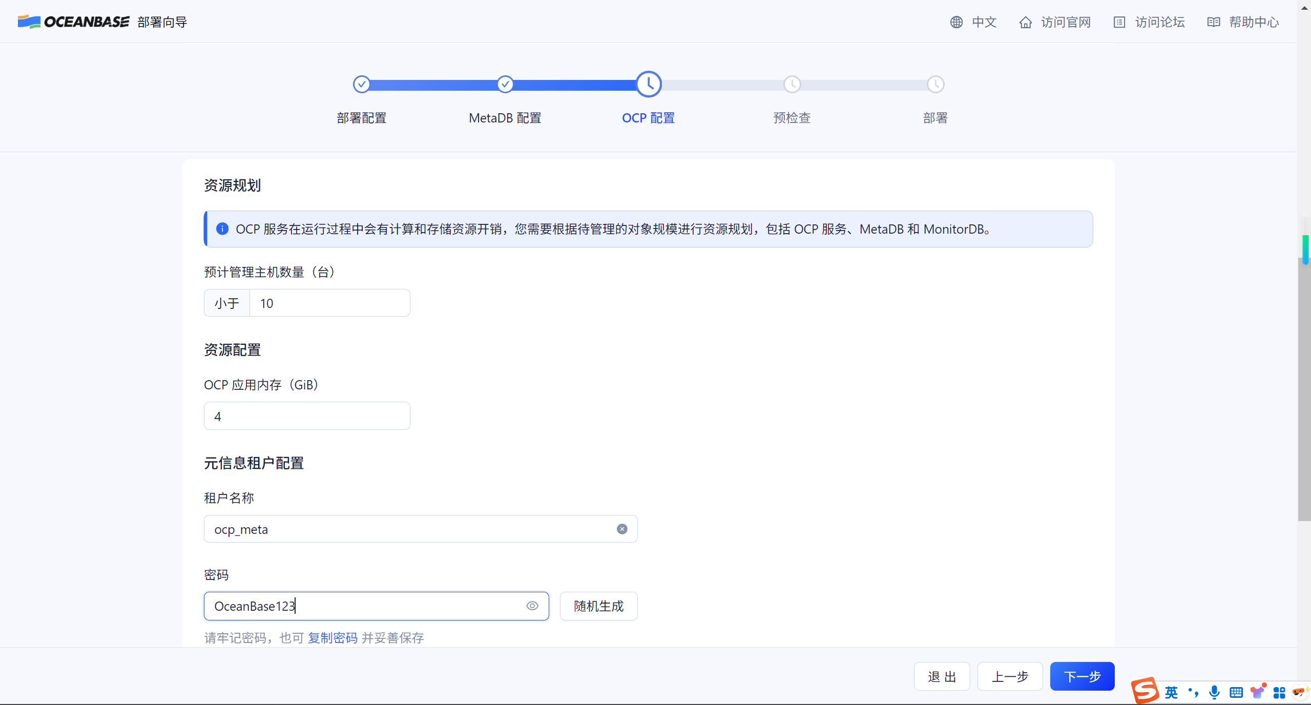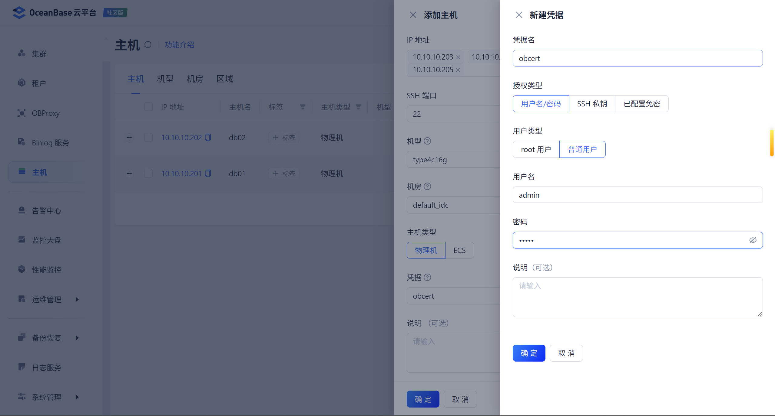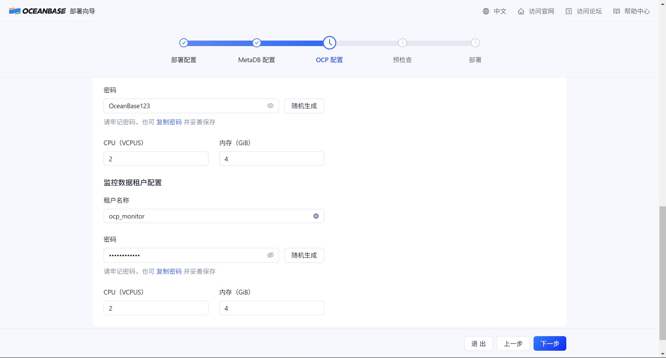 如无特殊说明,本次部署所有密码围为OceanBase123