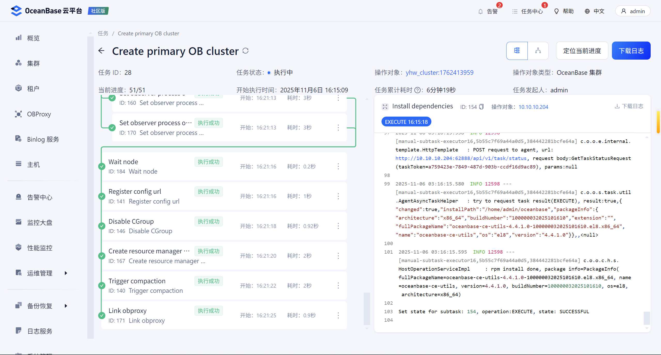 数据库管理-第386期 使用OCP部署OceanBase 4.4.1社区版集群(20251107)