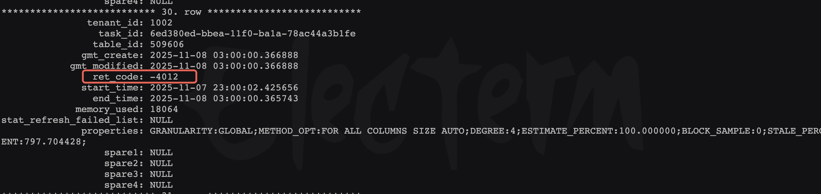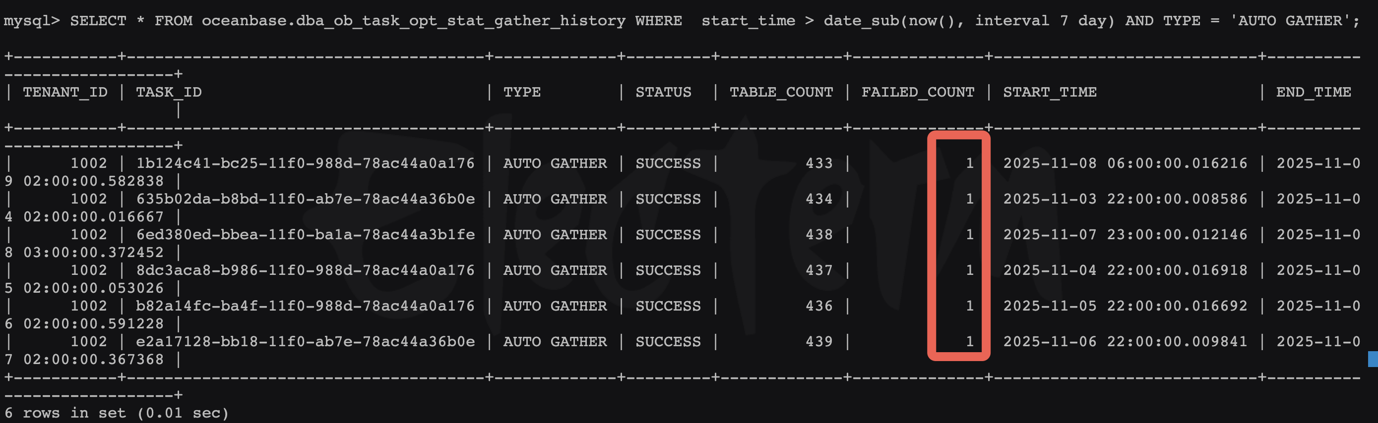 GV$OB_SQL_AUDIT 查询含 GATHER_% 的 SQL