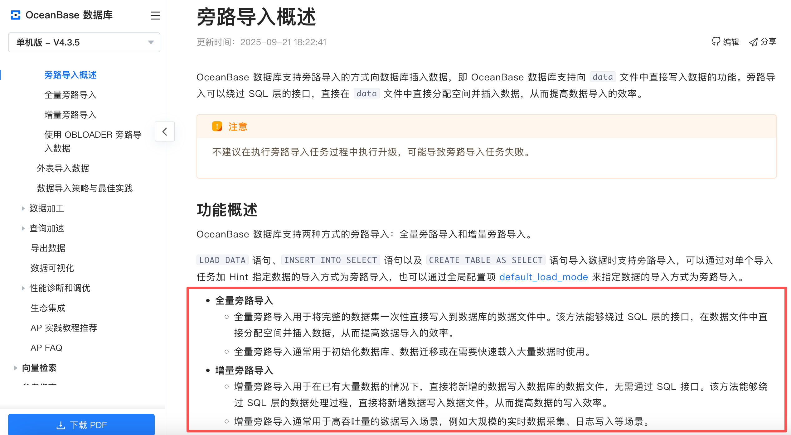 增量旁路导入是 OceanBase 数据库在 V4.3.1 版本中引入的一种实验特性,旨在优化表数据多次导入的场景。与全量旁路导入不同,增量旁路导入专注于处理新增数据,而无需重写现有数据,从而显著提高数据导入的性能