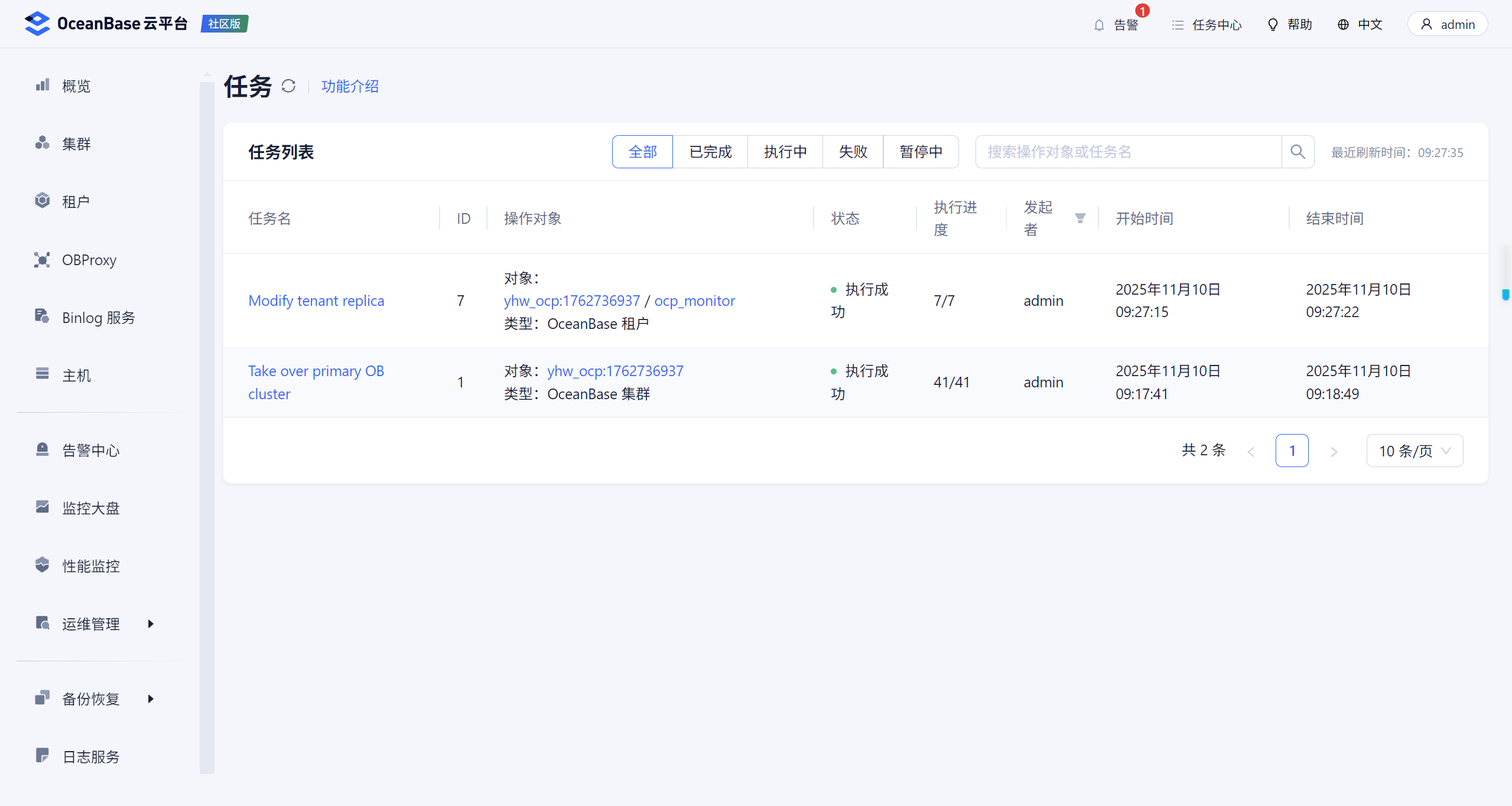最后还是只能将ocp_monitor租户的内存配置调整成4G,完成安装。