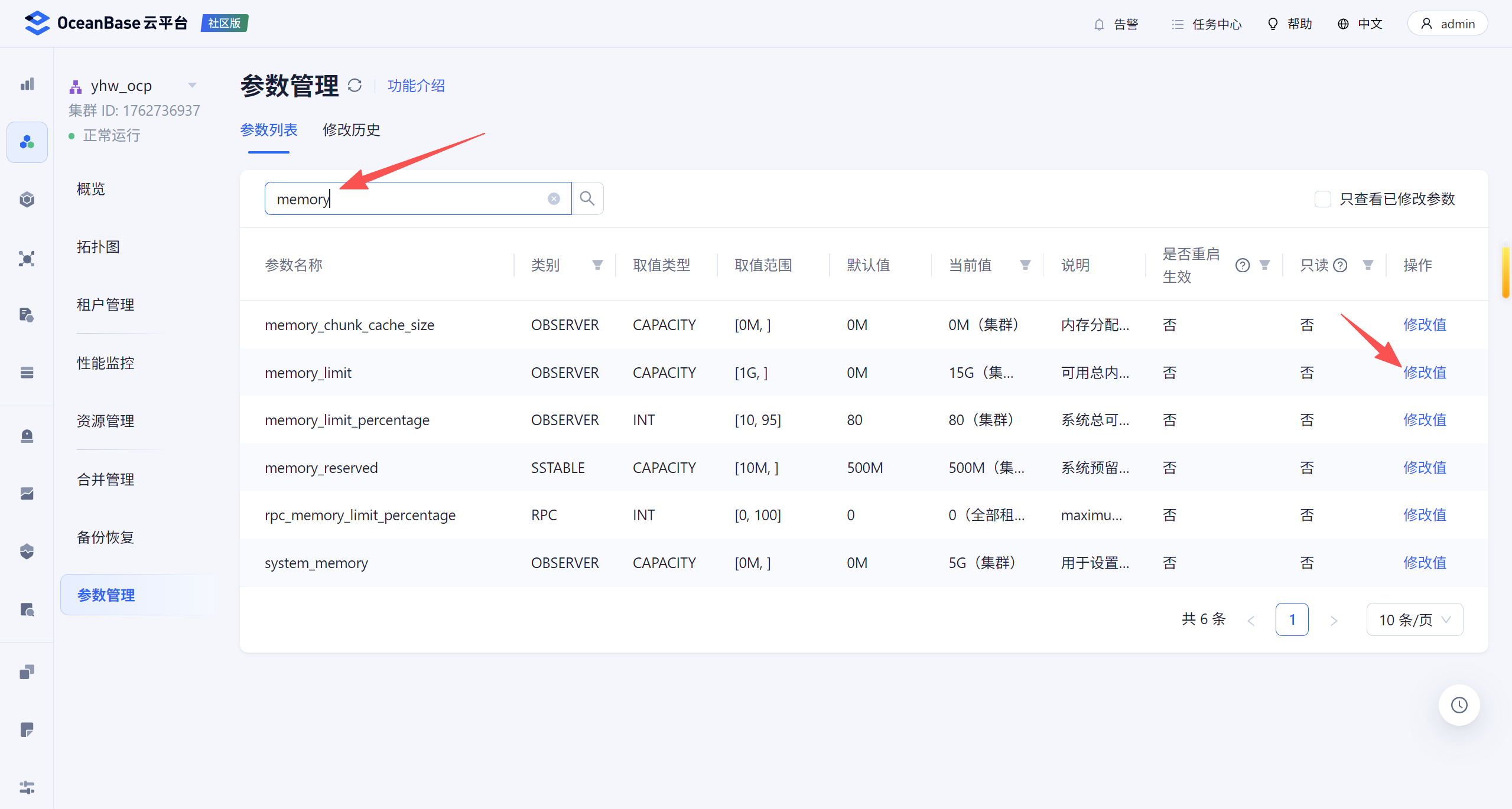 安装完成后MetaDB的内存分配依然是100%,我的目标仍然是将ocp_monitor的内存配置调整到默认的8G。