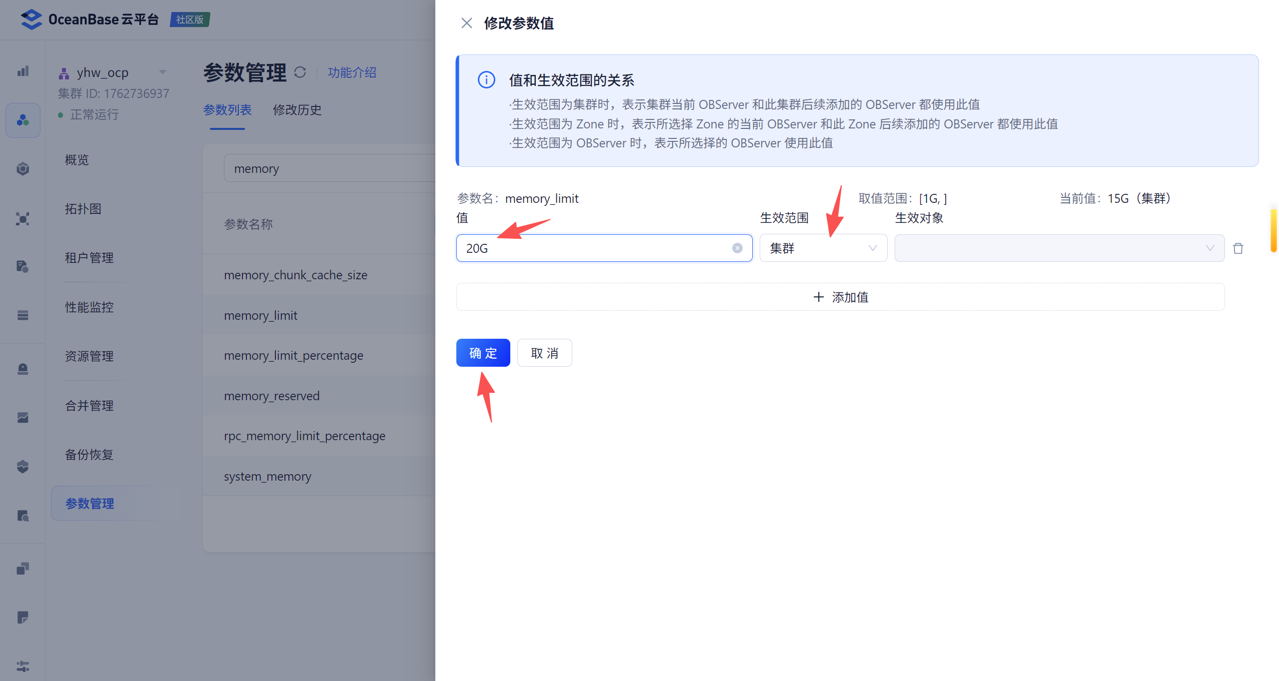 检查日志和配置相关信息,即便是配置了新的memory_limit,实际部署过程中仍然会使用“自动分配”的大小,即小于租户ocp_meta默认4G+ocp_monitor默认8G,共12G÷0.8=15G的需求,不知这是一个我配置流程的问题,还是“自动分配”相关的BUG。