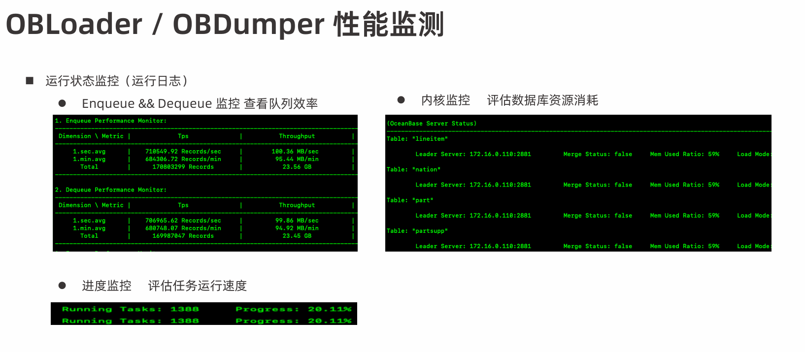 执行obdumper/obloader会在前台命令行打印