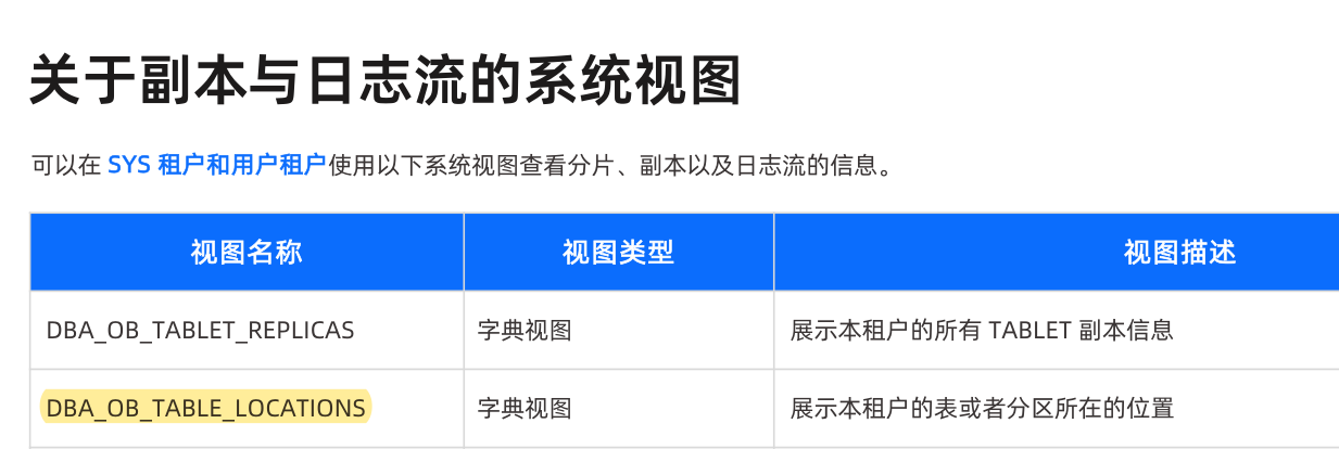 也就DBA_OB_TABLE_LOCATIONS视图包含了分区的副本位置信息,其他都不满足