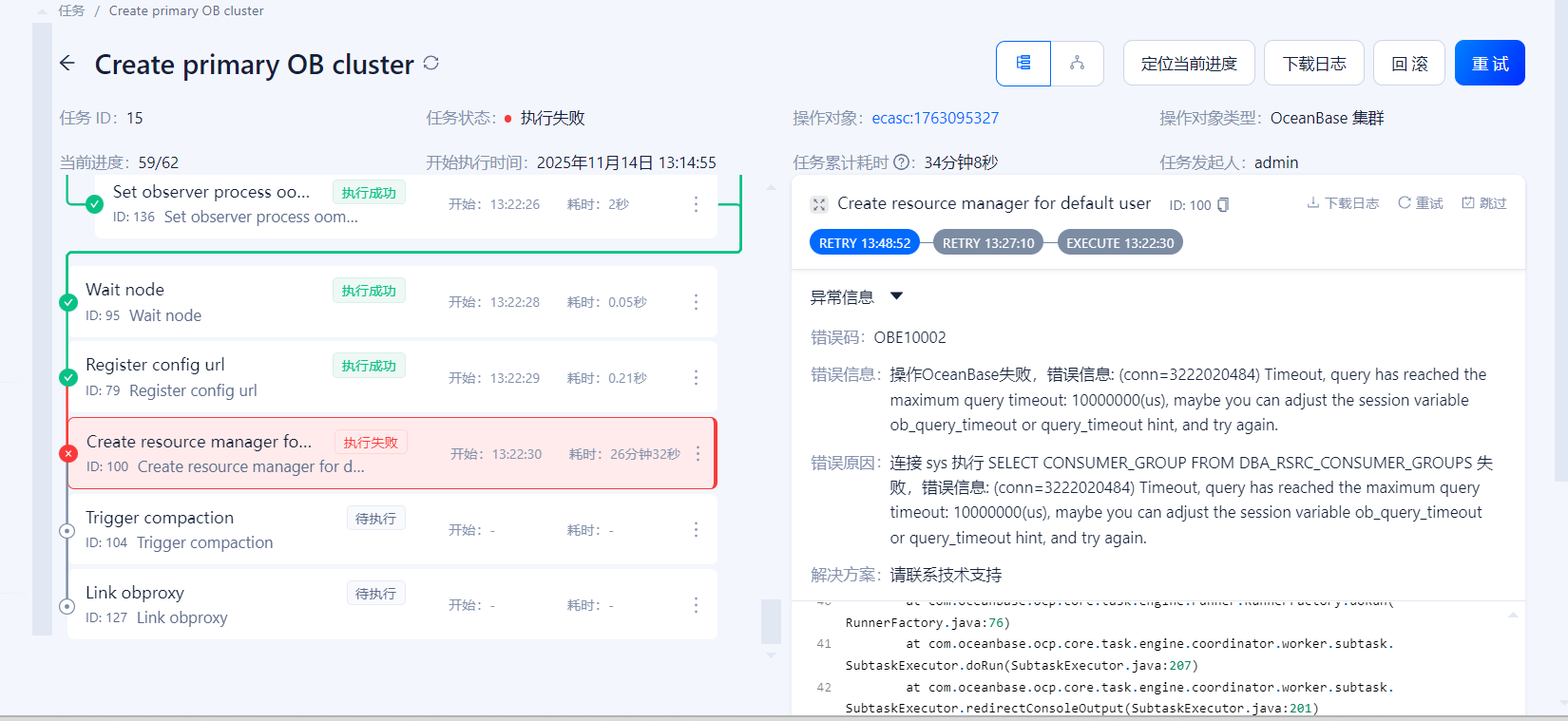 2025-11-14 13:22:35.572 WARN 214857 --- [manual-subtask-executor15,a9d38ad3f7d90a79,d60f2015eab12cbd] com.alibaba.druid.pool.DruidDataSource : get connection timeout retry : 1