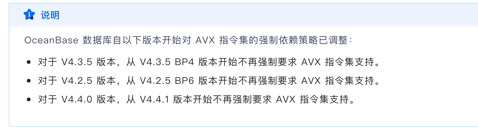 [2025-11-14 13:21:49.220143] WDIAG [COMMON] init_from_os (ob_cpu_topology.cpp:97) [275853][observer][T0][Y0-0000000000000001-0-0] [lt=44][errcode=0] cpu flag is not found(CPU_FLAG_CMDS[i]="grep -E ' avx2( |$)' /proc/cpuinfo")