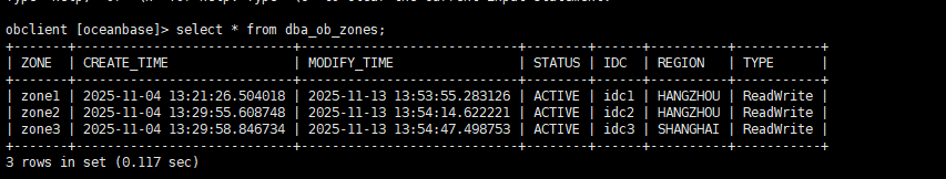 ALTER SYSTEM MODIFY zone “zone3” SET idc = “idc3”;