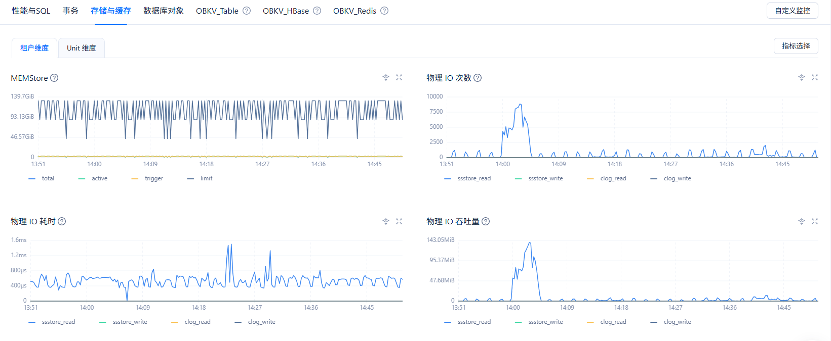 1、在ocp 租户–> 性能监控–>存储与缓存 物理 IO 次数,物理IO吞吐量,物理IO耗时