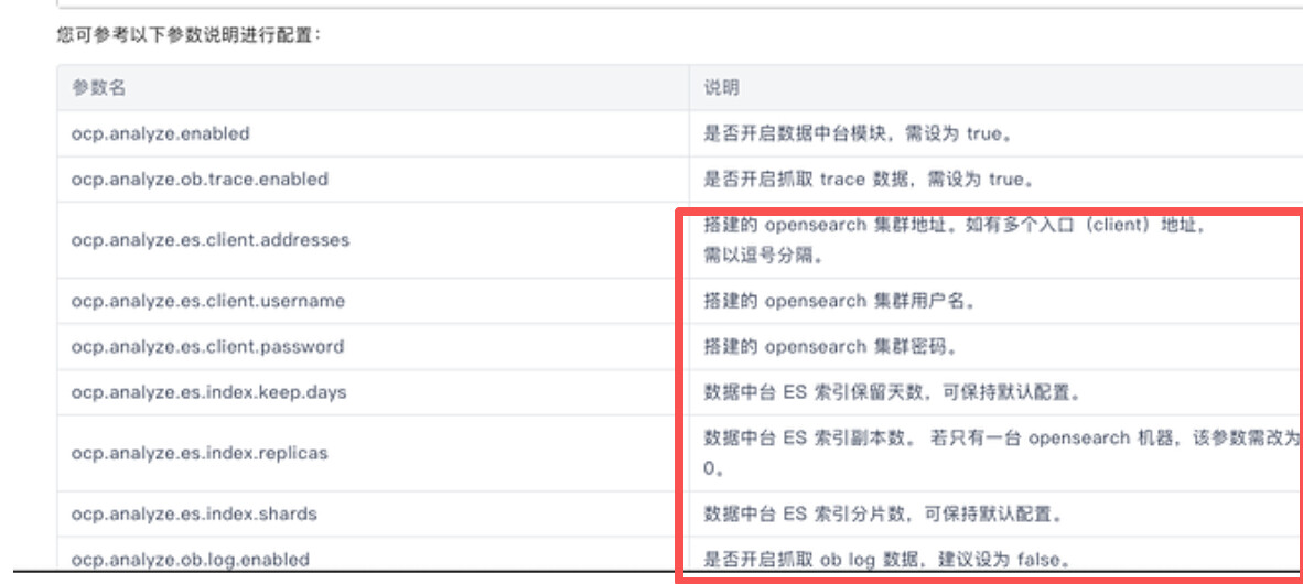 org.springframework.beans.factory.UnsatisfiedDependencyException: Error creating bean with name 'analyzeController': Unsatisfied dependency expressed through method 'setLogQuerier' parameter 0; nested exception is org.springframework.beans.factory.UnsatisfiedDependencyException: Error creating bean with name 'logQuerier' defined in class path resource [com/oceanbase/ocp/analyze/configuration/AnalyzeConfiguration.class]: Unsatisfied dependency expressed through method 'logQuerier' parameter 0; nested exception is org.springframework.beans.factory.BeanCreationException: Error creating bean with name 'restHighLevelClient' defined in class path resource [com/oceanbase/ocp/analyze/configuration/AnalyzeConfiguration.class]: Bean instantiation via factory method failed; nested exception is org.springframework.beans.BeanInstantiationException: Failed to instantiate [org.opensearch.client.RestHighLevelClient]: Factory method 'restHighLevelClient' threw exception; nested exception is java.lang.IllegalArgumentException: hosts must not be null nor empty