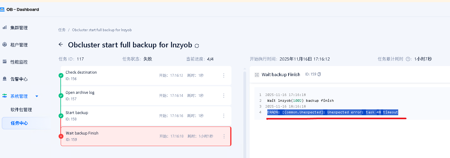 【问题描述】提示备份超时?