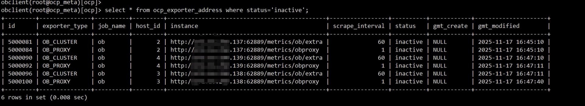 在OBServer节点,执行如下命令,显示ocp_monagent进程在