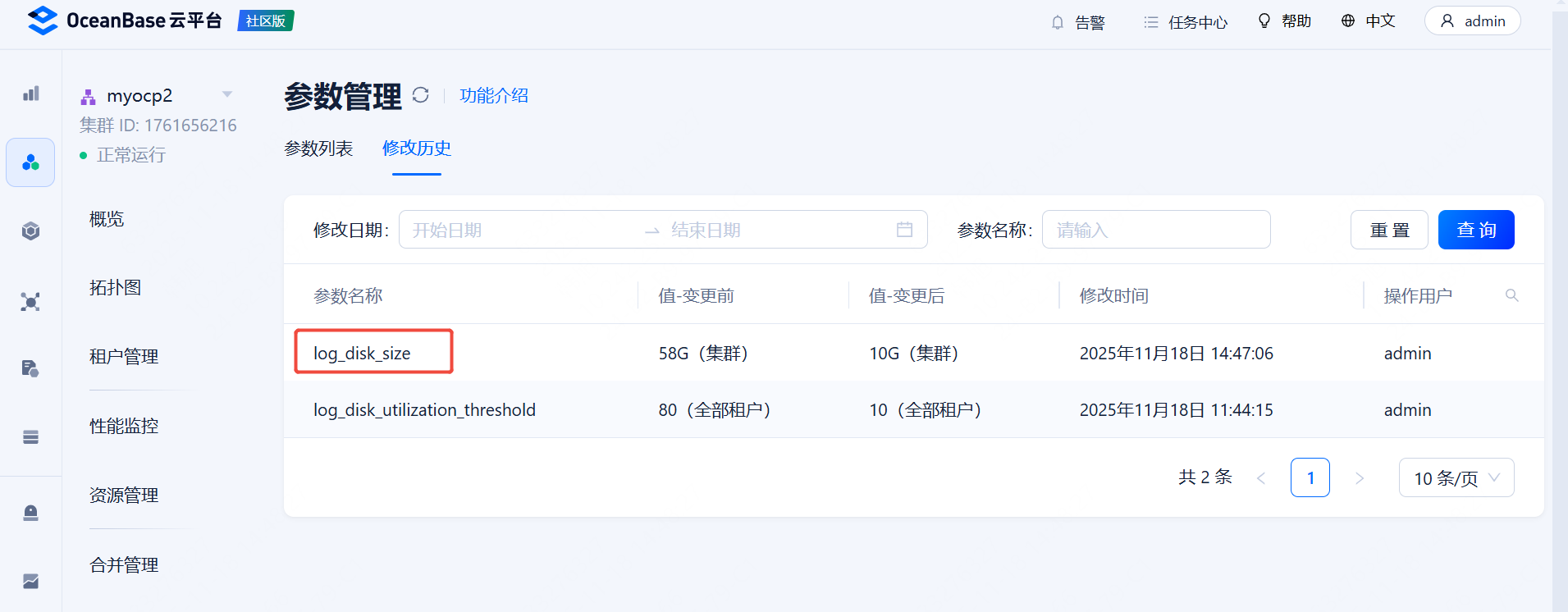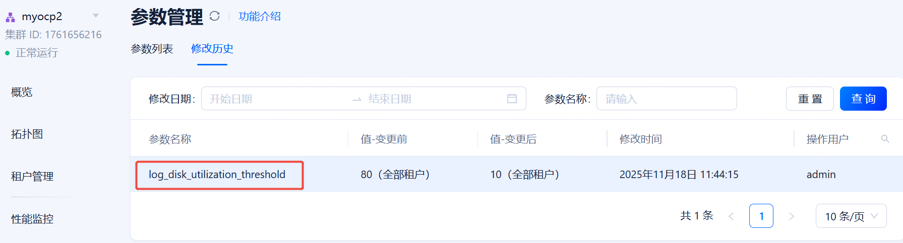参数 log_disk_utilization_threshold