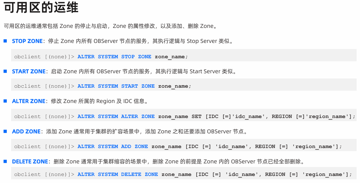 C STOP ZONE会Kill掉Zone内所有OBServer节点的observer 进程