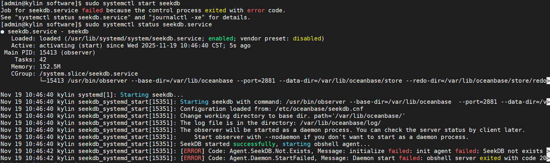KylinOS安装OceanBase seekdb-1.0.0.0(离线)。