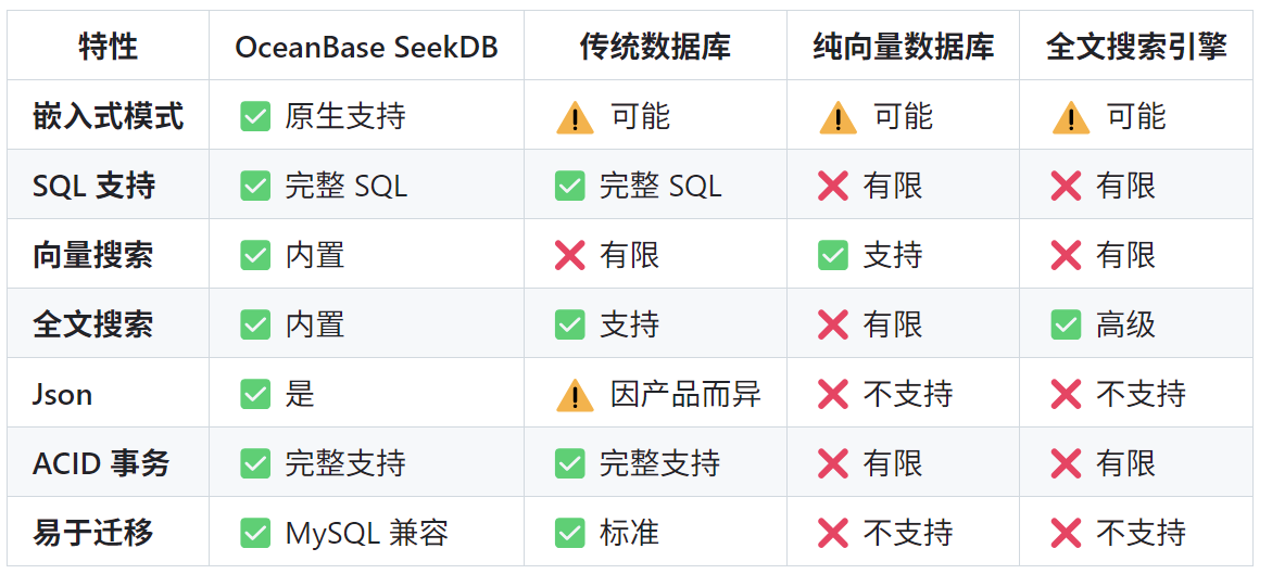 看来我们最早对新产品的重点“幻想”只是seekdb核心特性中很小的一部分。