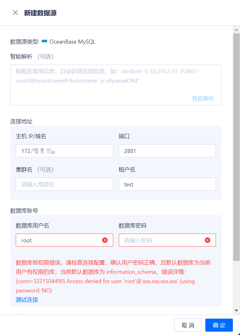 租户名字写错了,改成sys,我测试了ODC,连接seekdb是没问题的