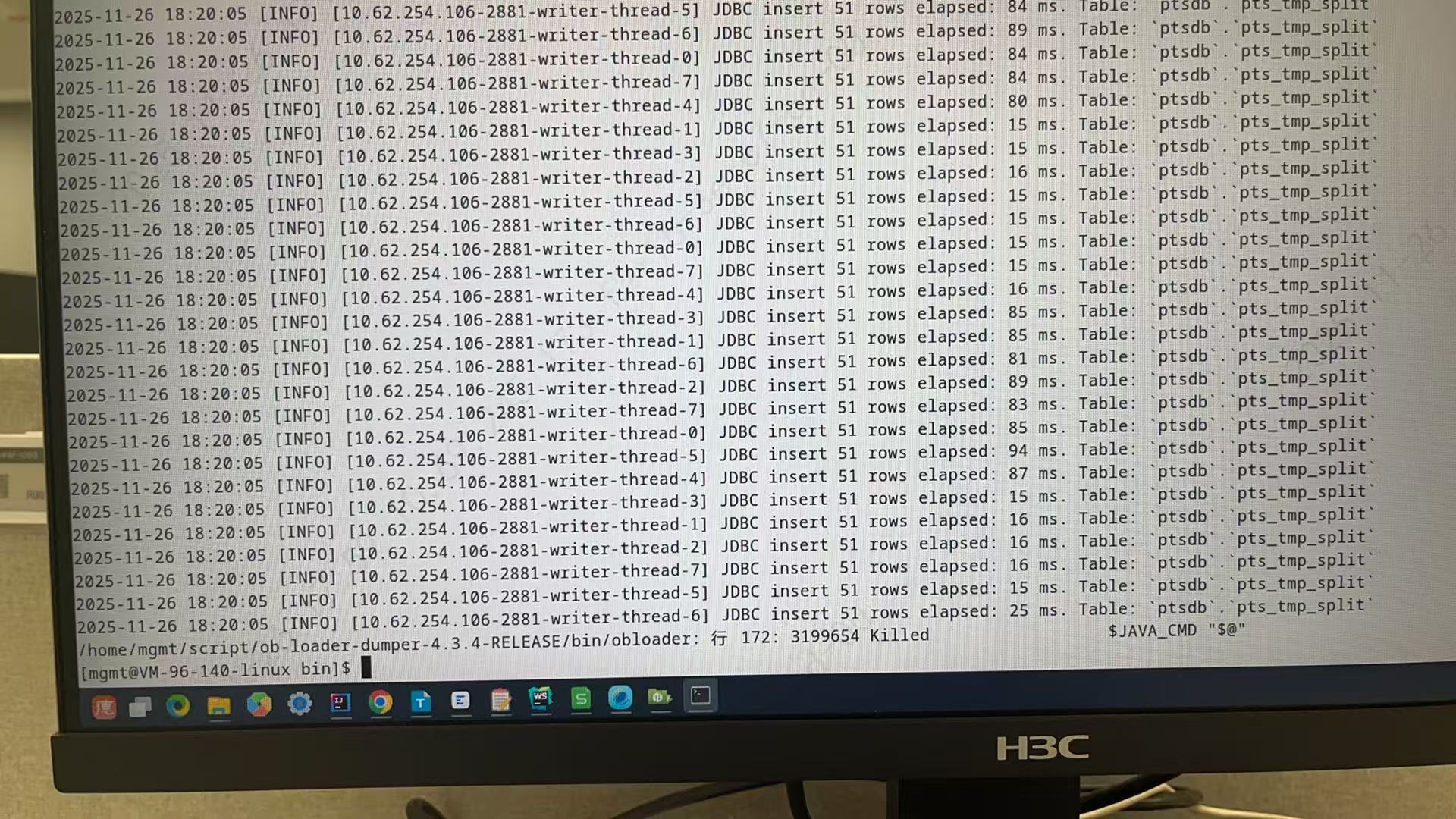 使用obloader4.3.4导入数据的时候显示进程被杀死