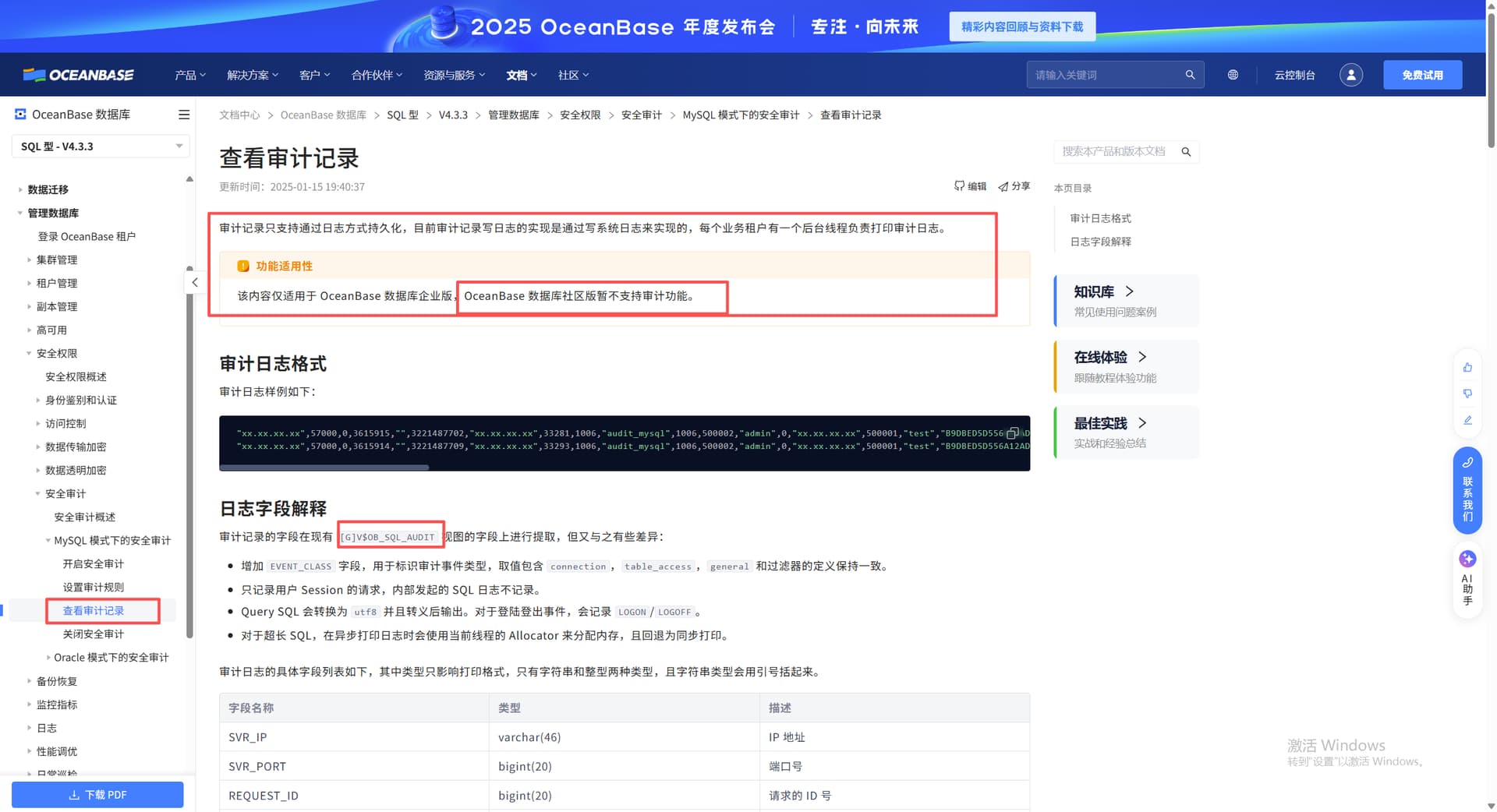 obclient [oceanbase]> show variables like 'ob_sql_audit_percentage';