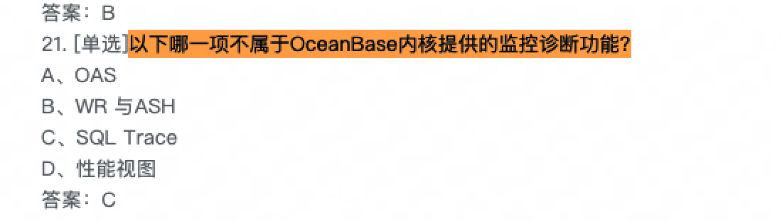 [单选]以下哪一项不属于OceanBase内核提供的监控诊断功能?