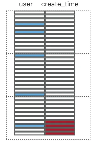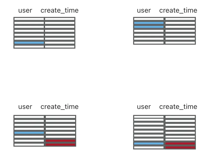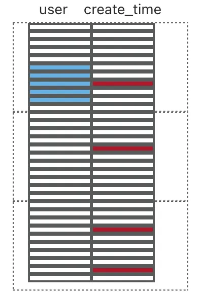 - 按用户聚集(索引组织表,主键为 user):