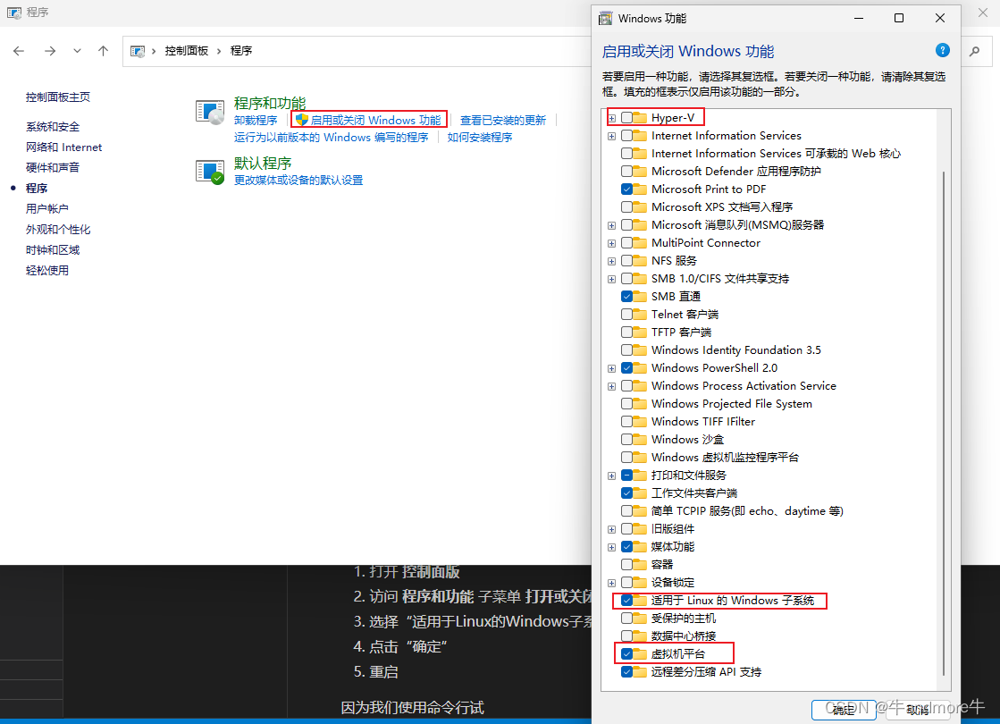 找到原因了,是没开启windows功能导致的,官网的步骤不完整