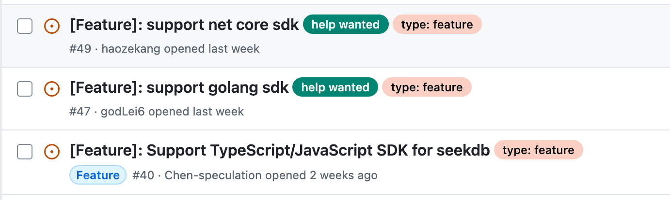seekdb现在只有python的sdk,后续会出java sdk吗,大概多久出