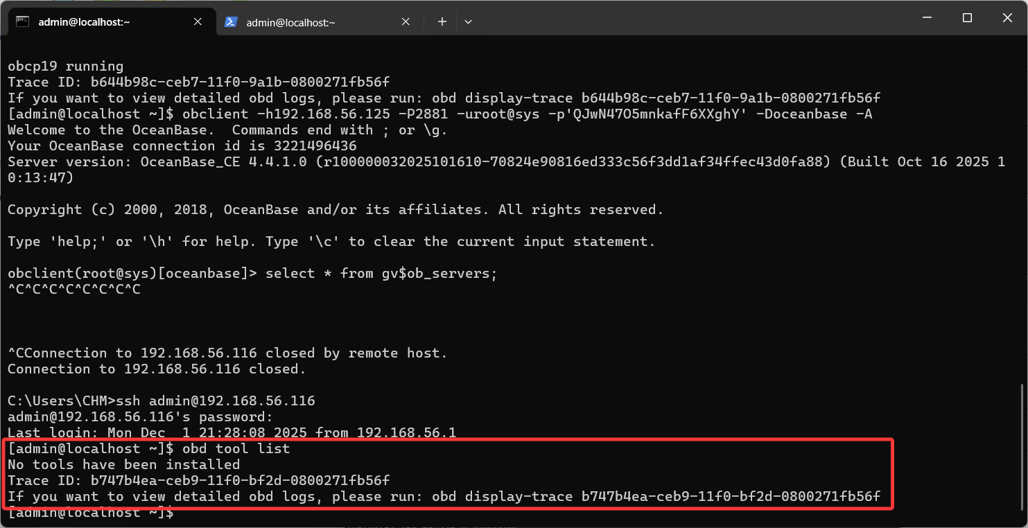 使用obd tool install可以安装obclient工具