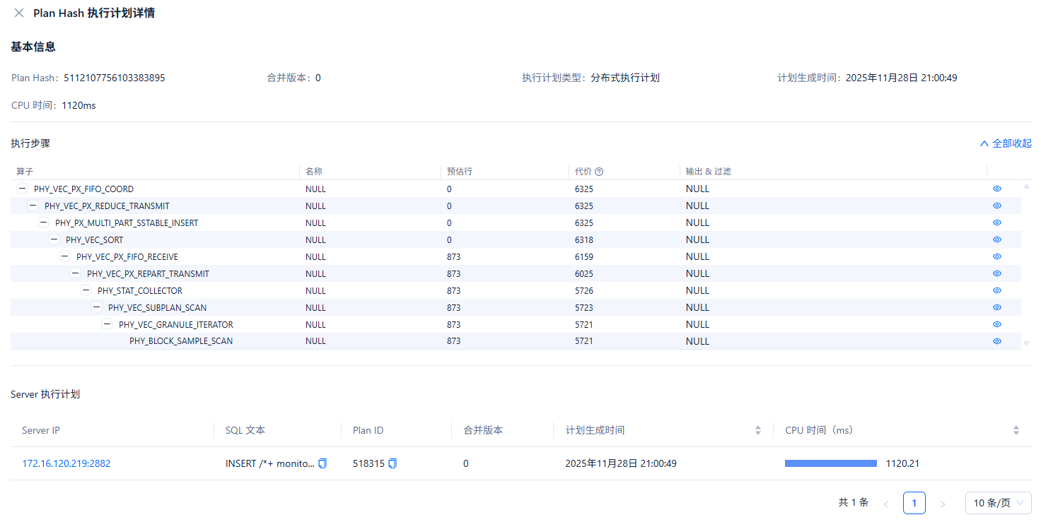 QUERY_SQL: INSERT / + monitor enable_parallel_dml parallel(1) opt_param(‘ddl_execution_id’, 2) opt_param(‘ddl_task_id’, 59522294) opt_param(‘enable_newsort’, ‘false’) use_px /INTO tuya_aimemory_prod.__idx_500612_idx_1765766796854809 PARTITION(M202506,M202509,P202512,P202603)(__vid_1753843499647861, __type_26_1753843499648191, biz_time, __vector_26_1753843499648596) SELECT / + index(ai_memory_alphago_memory_fact primary) ob_ddl_schema_version(ai_memory_alphago_memory_fact, 1765766797204232) */ __vid_1753843499647861 AS __vid_1753843499647861, __type_26_1753843499648191 AS __type_26_1753843499648191, biz_time AS biz_time, __vector_26_1753843499648596 AS __vector_26_1753843499648596 from tuya_aimemory_prod.ai_memory_alphago_memory_fact PARTITION(M202506,M202509,P202512,P202603) as of snapshot 1765766797235640000 order by 1, 2