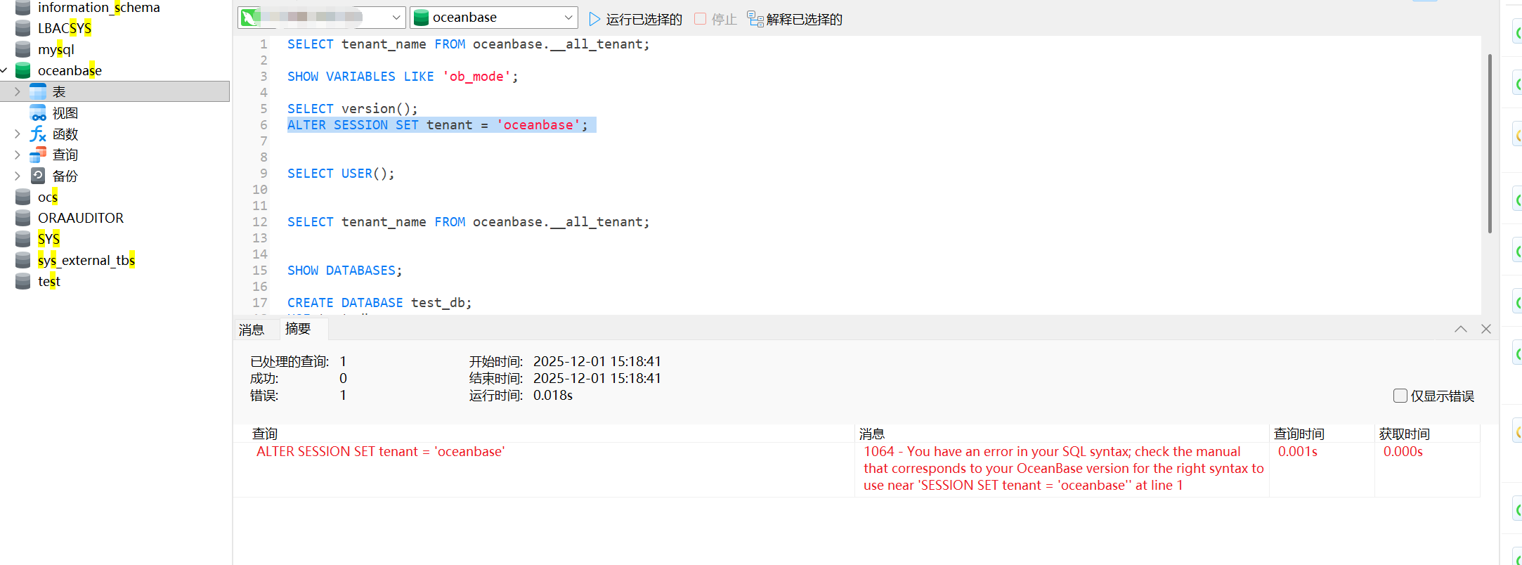 【 使用版本 】5.7.25-OceanBase_CE-v4.4.1.0