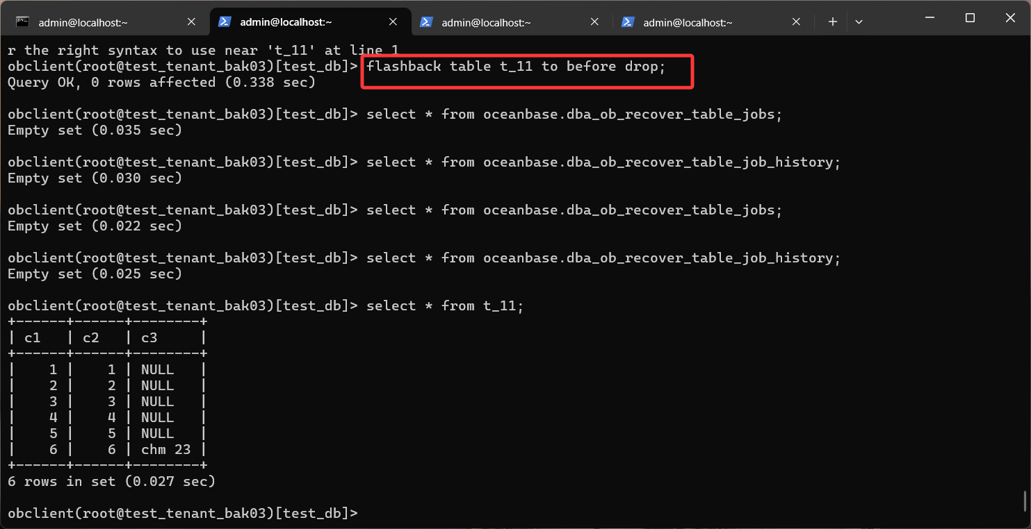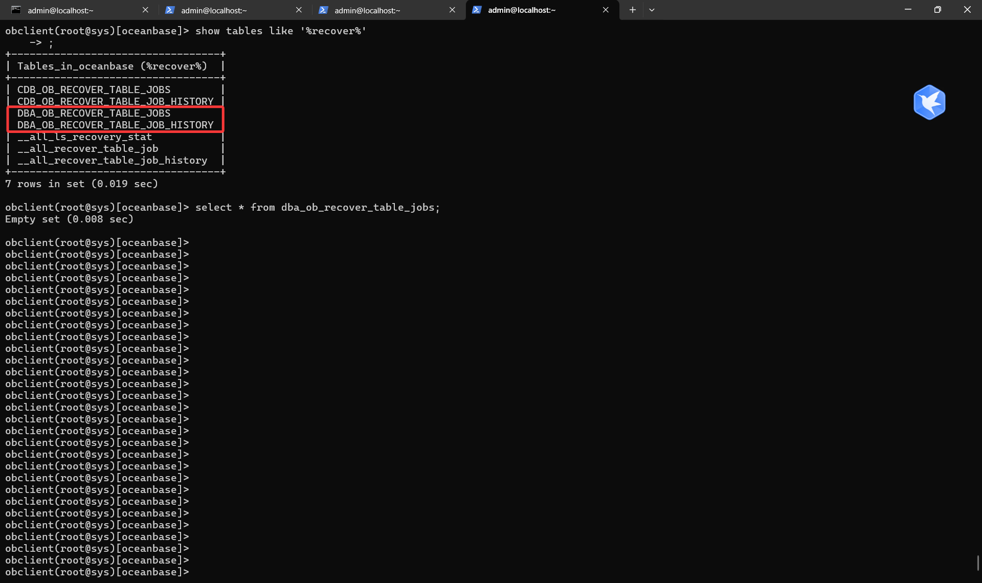 dba_ob_recover_table_jobs没有数据,是什么命令会触发这个job?