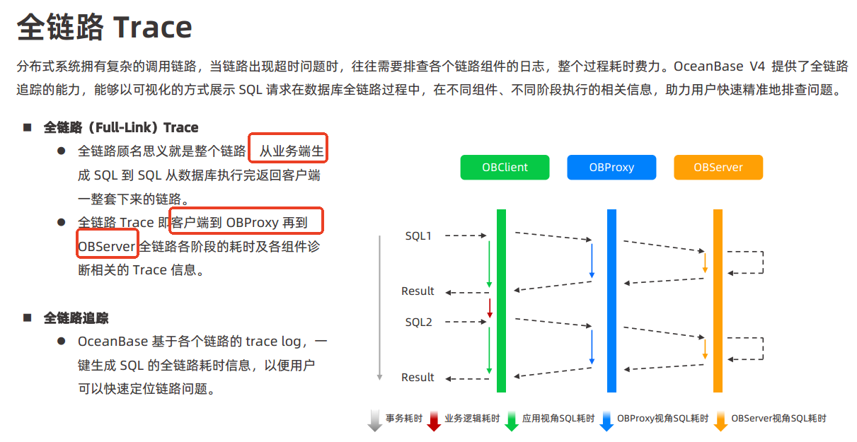 全链路Trace在OceanBase V4中能够展示的信息包括: