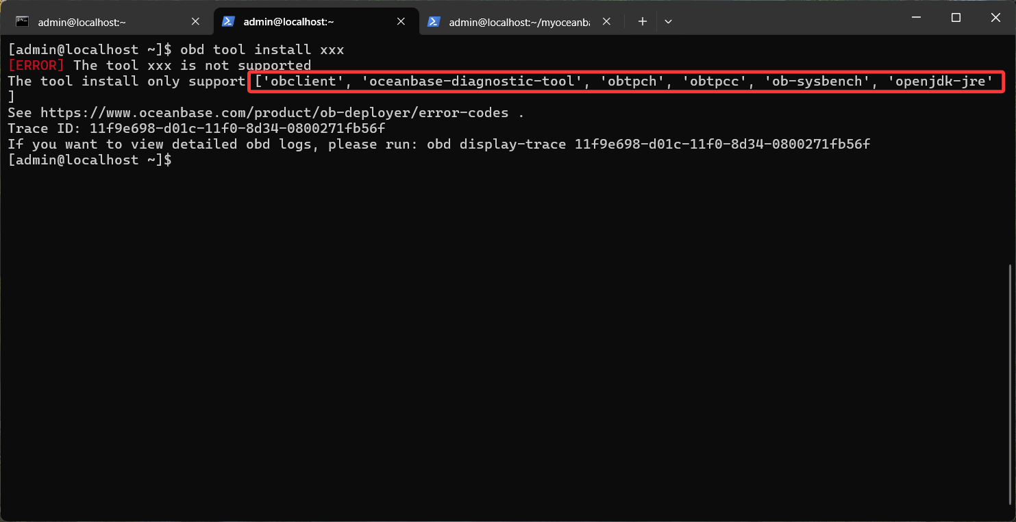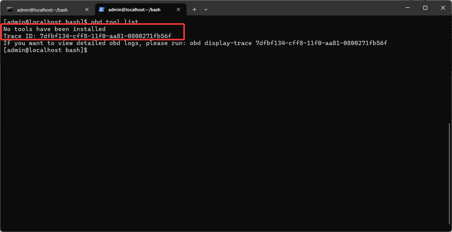 采用all-in-one部署的obd,但是执行obd tool list没有任何数据,是还有哪个命令需要执行吗?