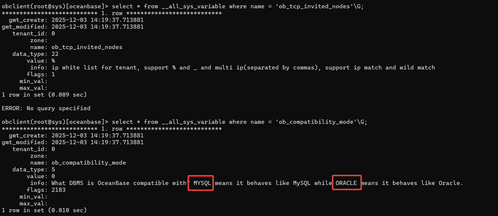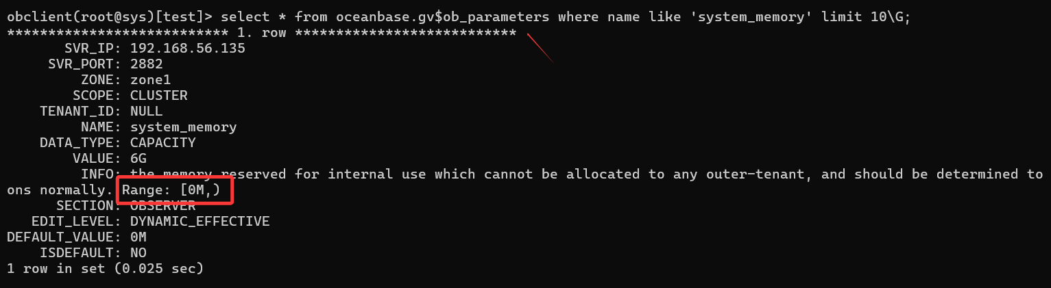 select * from __all_sys_variable\G 通过查询这张表。取值范围在官网文档介绍都会有
