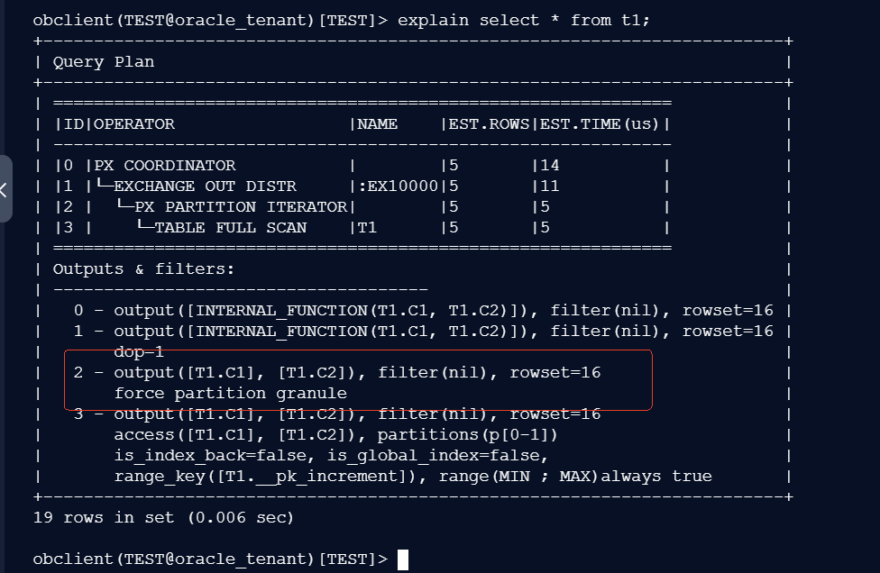 执行select * from t1 , 如何查看它线程数量。是两个还是三个。按照文档分析是三个,查看执行计划是安装partition granual 应该是两个!