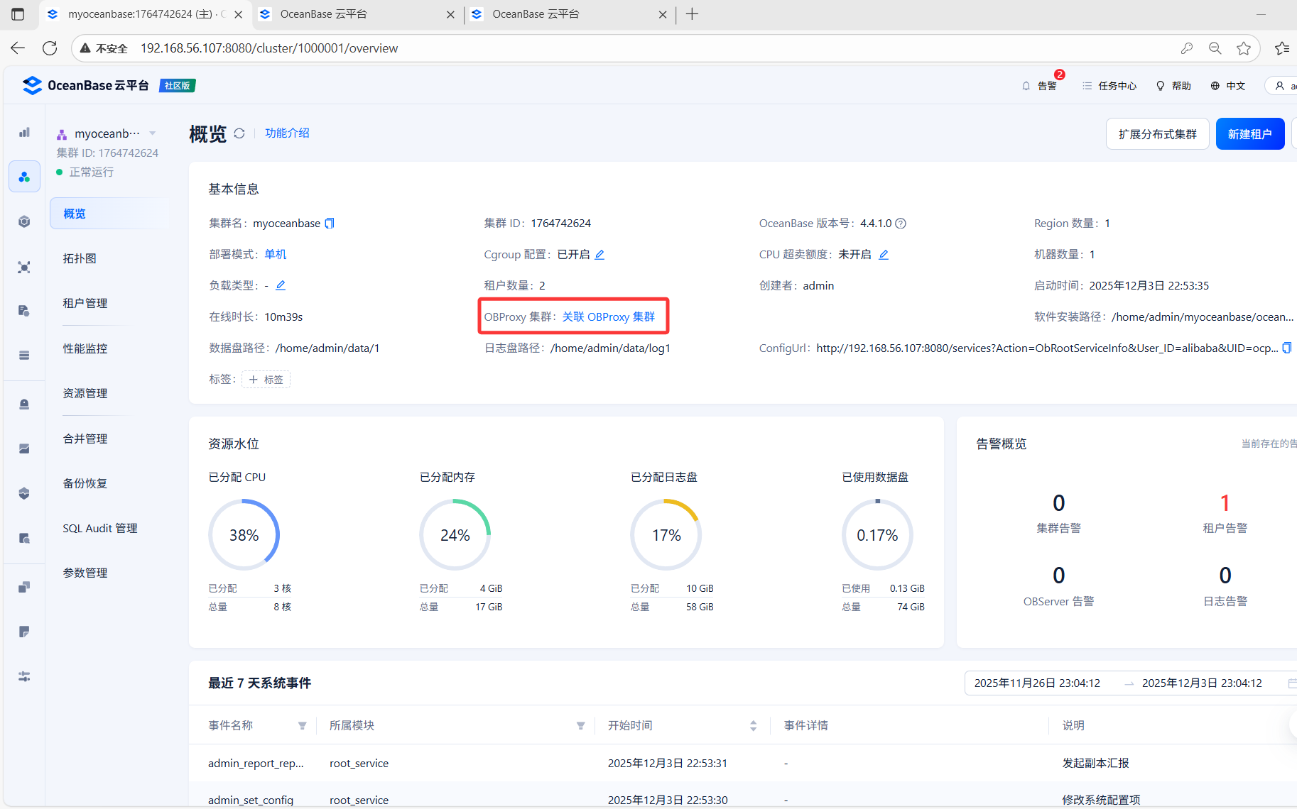 谢谢了,我刚试了,不勾选“部署OBPROXY 复选框”就空集群,对吧?