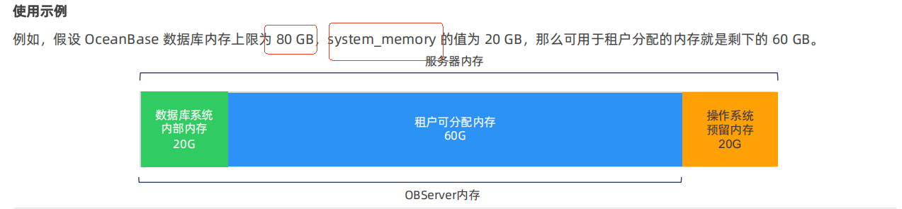 memory_limit = 480:表示ObServer实例的内存限制为480GB。