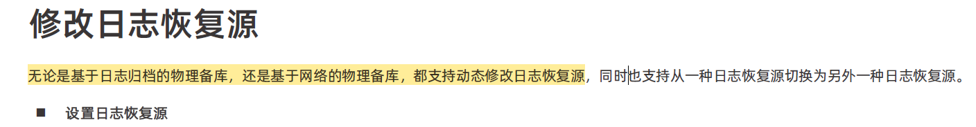 修改日志源这句话太模糊了! 什么叫:无论是基于日志归档的物理备库,还是基于网络的物理备库,都支持动态修改日志恢复源? 什么叫:同时也支持从一种日志恢复源切换为另外一种日志恢复源?