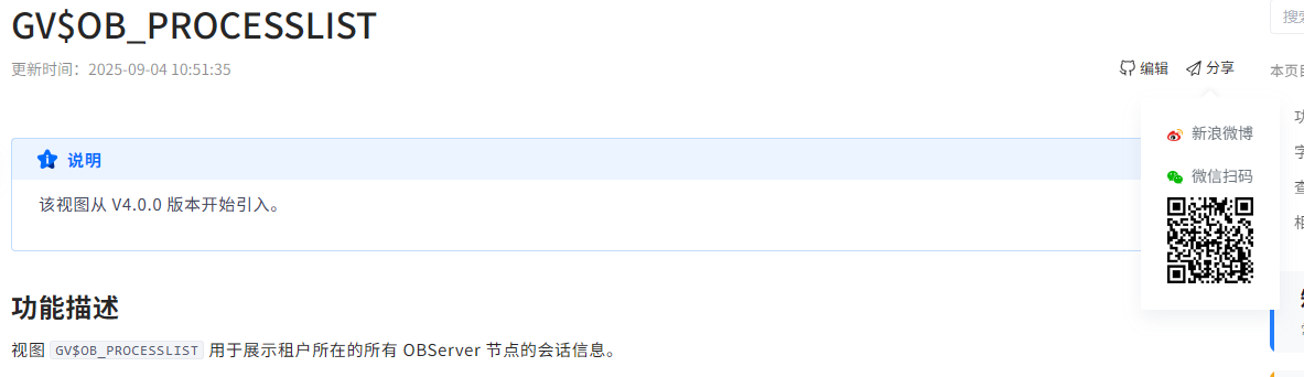 主要用于查看当前 OceanBase 集群中的活跃会话和进程信息,比如会话 ID、用户、执行的 SQL 语句、状态等,不涉及 Trace 采集策略。
