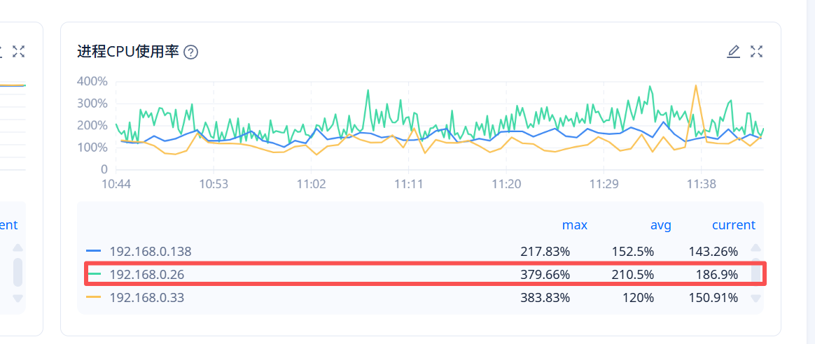 用top命令查看,3这个cpu占用经常在200%以上,其他两个大多在150%以下