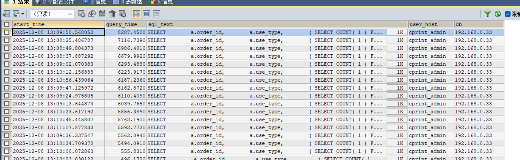 查询sql执行速度慢的记录: