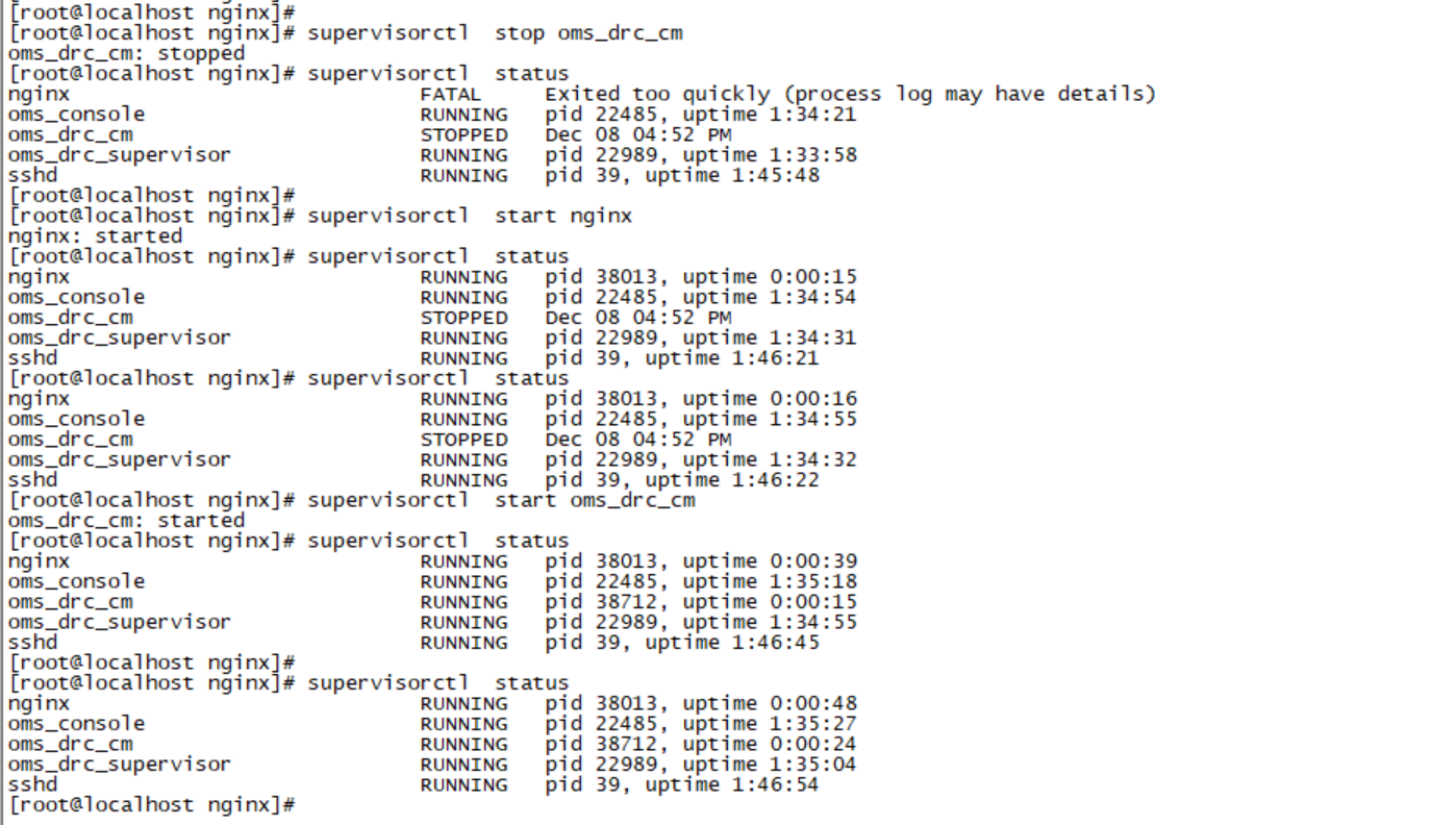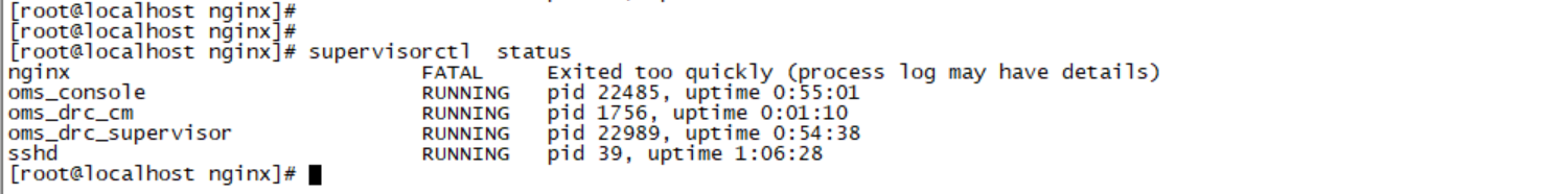 看一下/home/admin/logs/oms_nginx_stderr.log、oms_nginx_stdout.log日志里有没有报错
