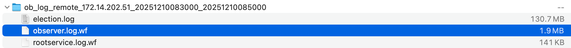 执行了 obd obdiag gather log myocp --from “2025-12-10 08:00:00” --to “2025-12-10 09:00:00”