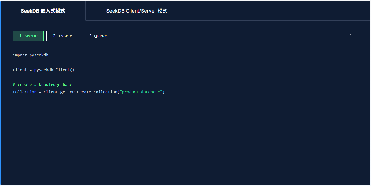 seekdb 延续了 OceanBase 在部署上的友好设计,提供多种方式,适应从开发测试到生产部署的不同场景。