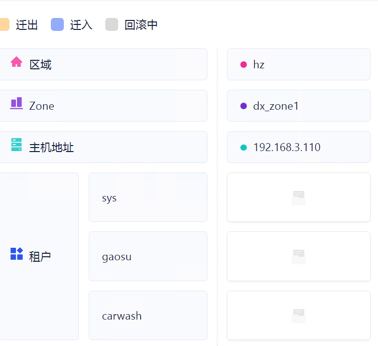 SELECT c.TENANT_ID, e.TENANT_NAME, f.SVR_IP,concat(c.NAME, ': ', d.NAME)`pool:conf`,concat(c.UNIT_COUNT, ' unit: ', d.min_cpu, 'C/', ROUND(d.MEMORY_SIZE/1024/1024/1024,0), "G") unit_info FROM DBA_OB_RESOURCE_POOLS c, DBA_OB_UNIT_CONFIGS d, DBA_OB_TENANTS e ,DBA_OB_UNITS f WHERE c.UNIT_CONFIG_ID=d.UNIT_CONFIG_ID AND c.TENANT_ID=e.TENANT_ID AND e.TENANT_ID=f.TENANT_ID AND c.RESOURCE_POOL_ID=f.RESOURCE_POOL_ID ORDER BY c.TENANT_ID;