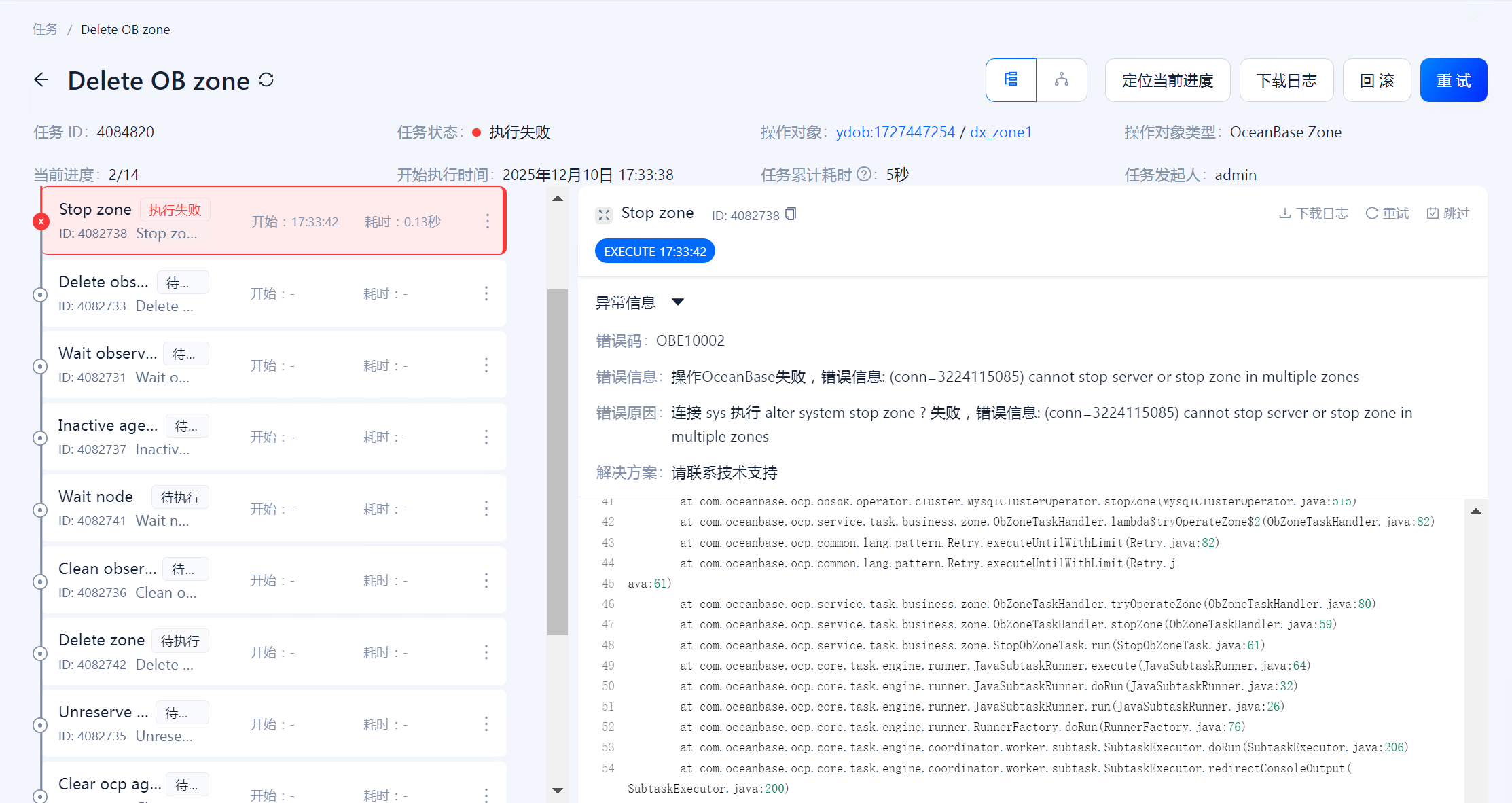 【 使用版本 】OB版本4.3.5.2,OCP版本4.3.1