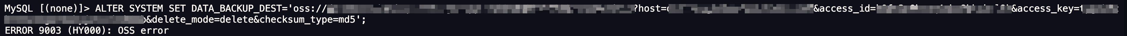 【复现路径】mysql连接的方式,连接到ob实例,黑屏化执行设置备份路径的sql