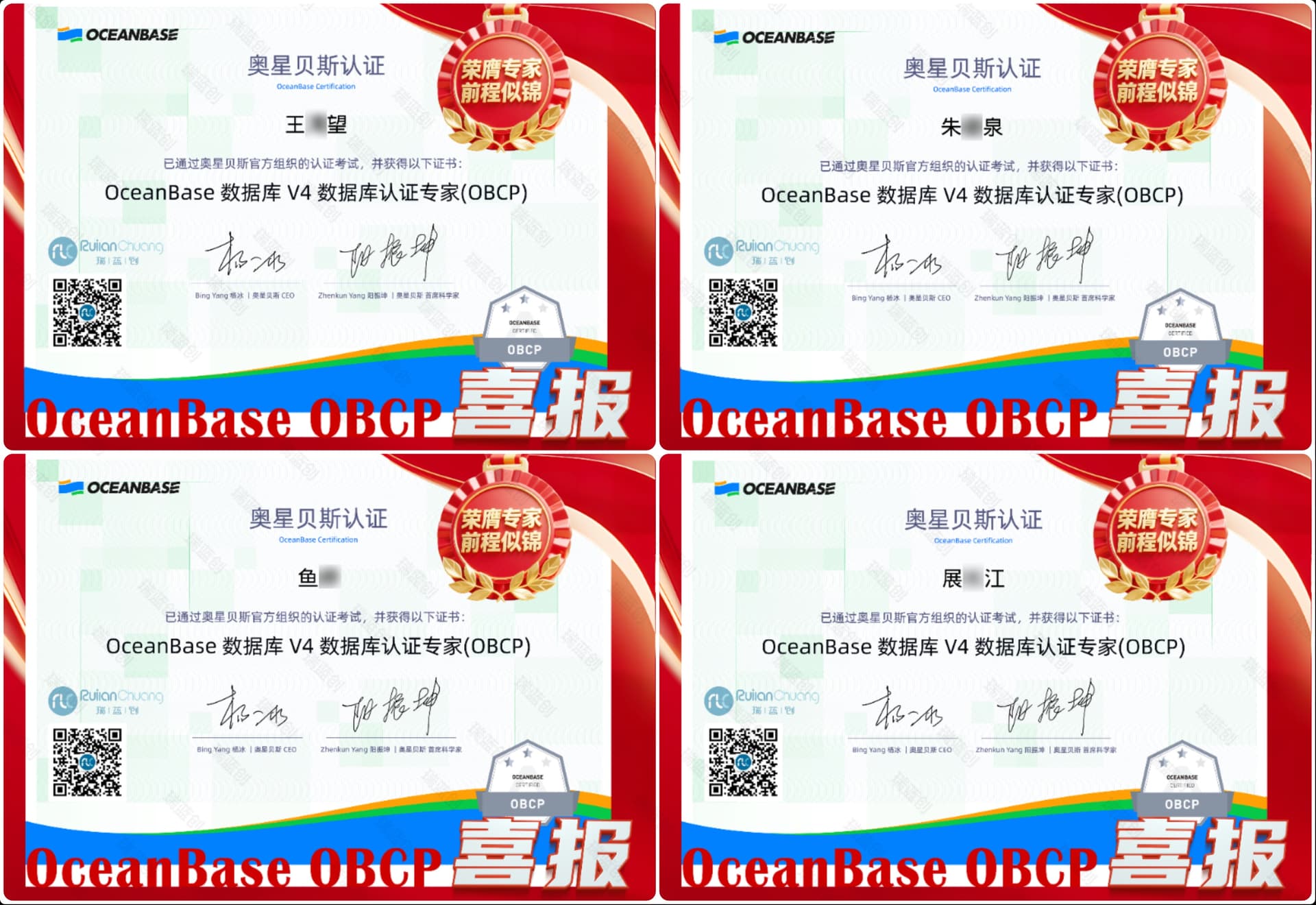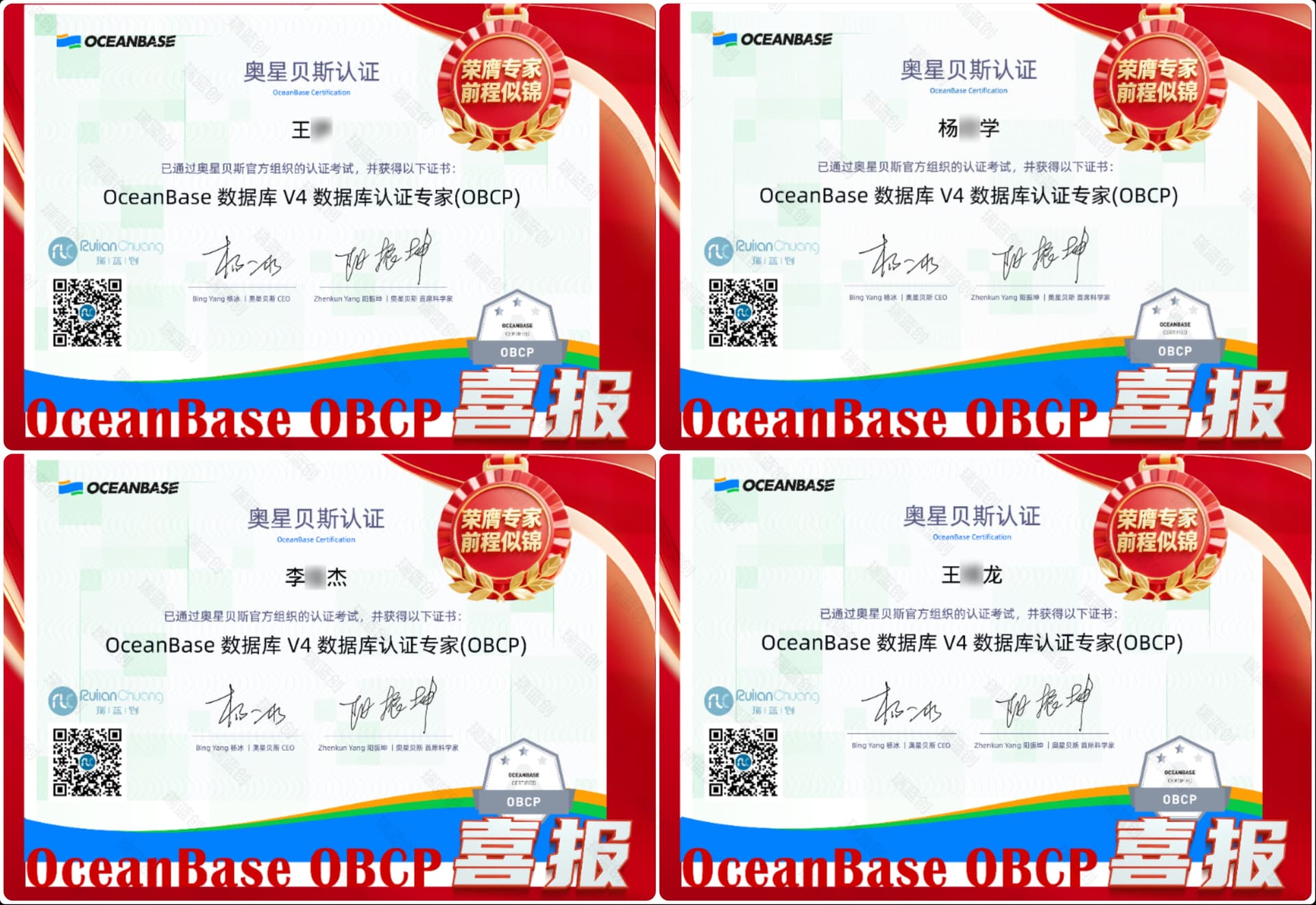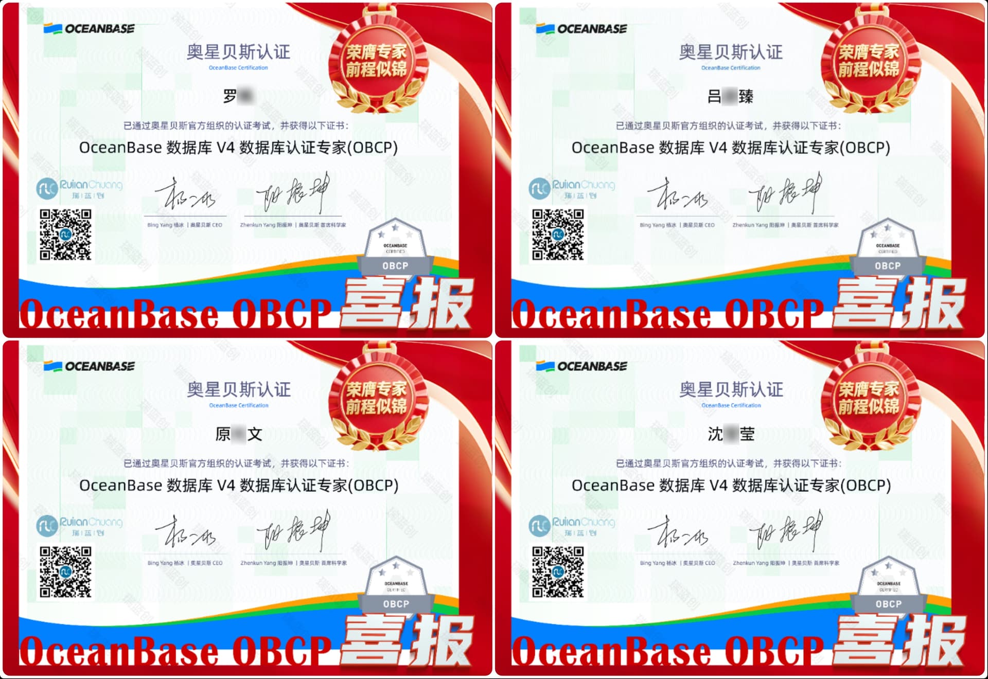 截至12月,瑞蓝创 OceanBase OBCP V4认证考试通过同学已达77位!
