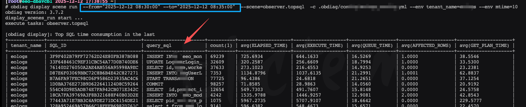 obdiag 3.7.2 客户端查询 display scene topsql的场景: