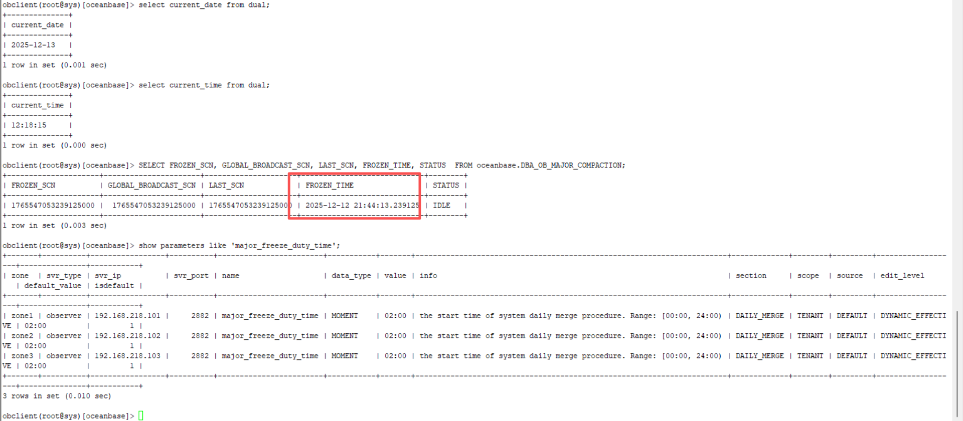 日志采集命令: obdiag gather scene run --scene=observer.compaction